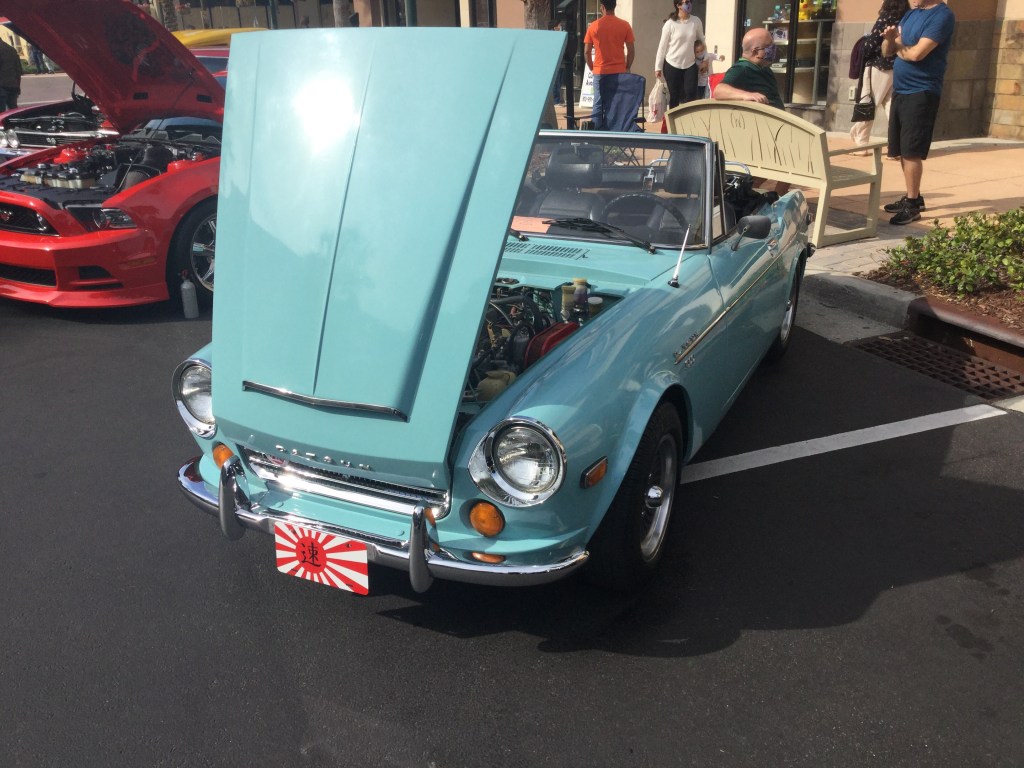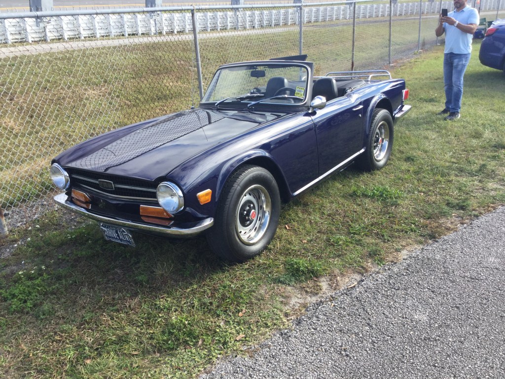 This is a ’73 Triumph TR6 that was at the 2021 Daytona Turkey Rod Run. The TR6 is a sports car that was made by British automaker Triumph between 1968 and 1976. A total of 94,619 were made. Only 8,370 of which were sold in the UK. The engine is a 2.5 liter straight-6 that produces 150 horsepower and 164 pound-feet of torque. The transmission is a 4-speed manual. The TR6 does 0-60 mph in 8.2 seconds and has a top speed of 119 mph.