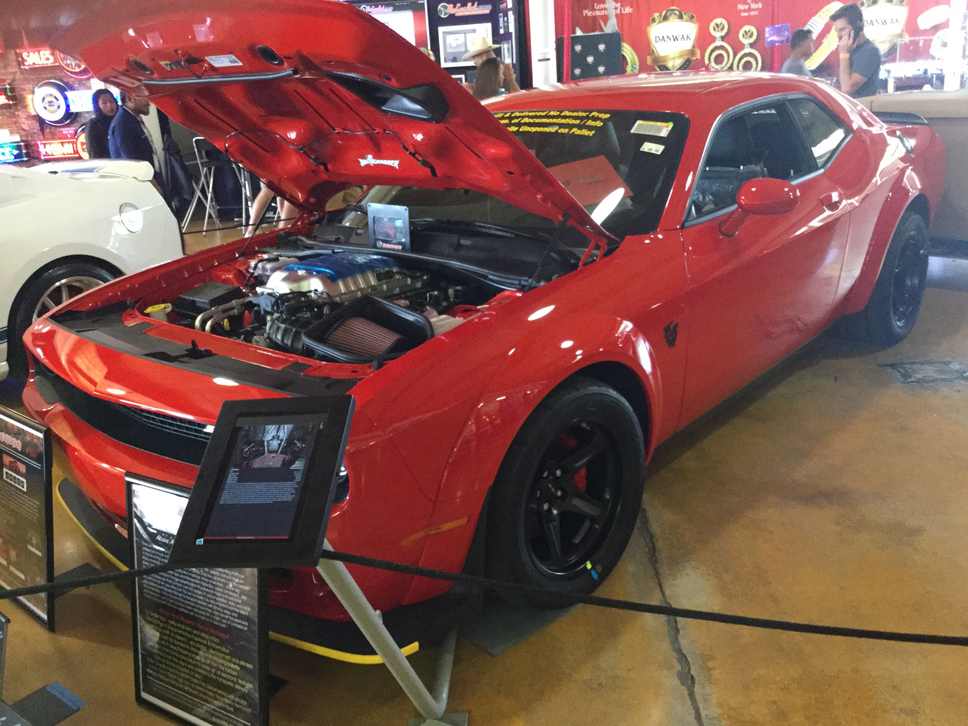 Today’s car of the day is this 2018 Dodge Challenger Demon that was at the 2018 Barrett-Jackson Auction in Palm Beach. It’s from the third generation, which has been in production since 2008. The Demon was unveiled at the 2017 New York Auto Show, and even made it’s film debut in The Fate of the Furious. Tim Kuniskus is the man behind the project, and he presented the car while the song “Fuel” by Metallica was being played. The engine is a 6.2 liter supercharged V8 that produces 840 horsepower and 770 pound-feet of torque. The transmission is an 8-speed automatic. This car weighs 4,279 pounds since the chassis is unitary steel. This car does 0-60 mph in 2.3 seconds. I’m not sure what the true top speed is because one source says that it’s 207 mph, and another says it’s 168 mph. The starting price of the Demon is $86,090, and 3,300 are being built. 3,000 are being sold in America, and the remaining 300 will be sold in Canada.