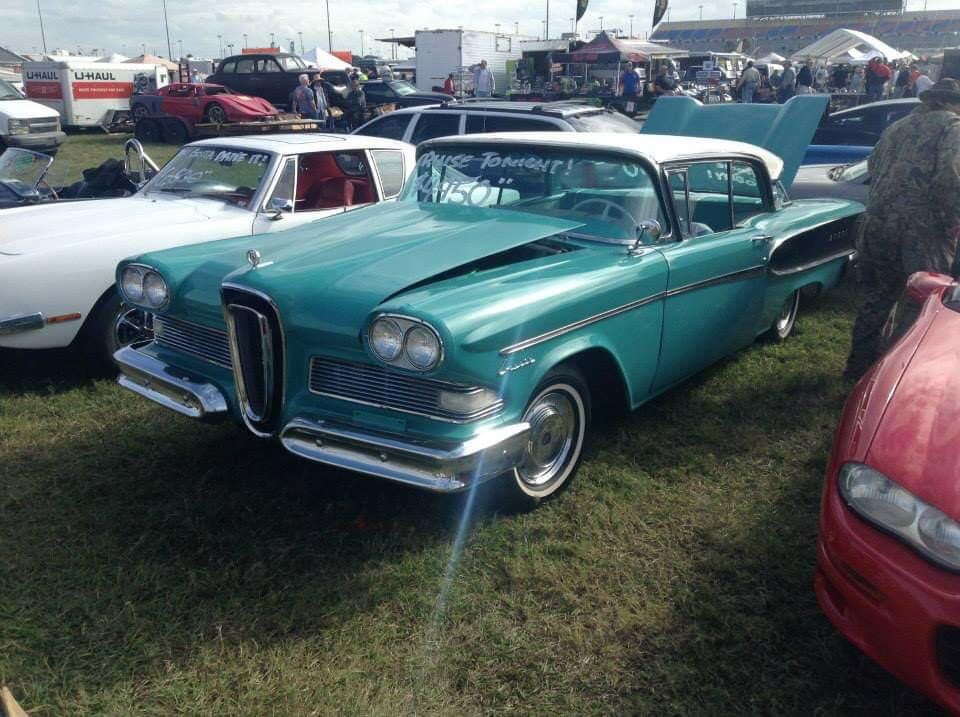 That’s a ’59 Edsel Corsair that was at the 2021 Daytona Turkey Rod Run. Edsel was a marquee from Ford Motor Company that lasted from 1956 to 1960. The Edsel Corsair was made between 1958 and 1959. This is from the second generation, which was made in 1959. The engine of this one is a 5.9 liter FE V8 that produces 303 horsepower and 390 pound-feet of torque. The transmission of this one is a 2-speed automatic. This car does 0-60 mph in 9.5 seconds and has a top speed of 120 mph.