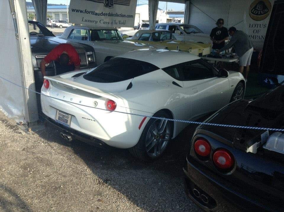This is a 2020 Lotus Evora GT that was at the 2023 Gulf View Square Mall Car Show. The Lotus Evora is a supercar that was made between 2009 and 2021 (model years between 2010 and 2021). The GT variant was introduced in 2019 for the 2020 model year. The engine is a 3.5 liter supercharged Toyota V6 that produces 416 horsepower and 317 pound-feet of torque. The transmission of this one is a 6-speed manual. This car does 0-60 mph in 4 seconds and has a top speed of 188 mph.