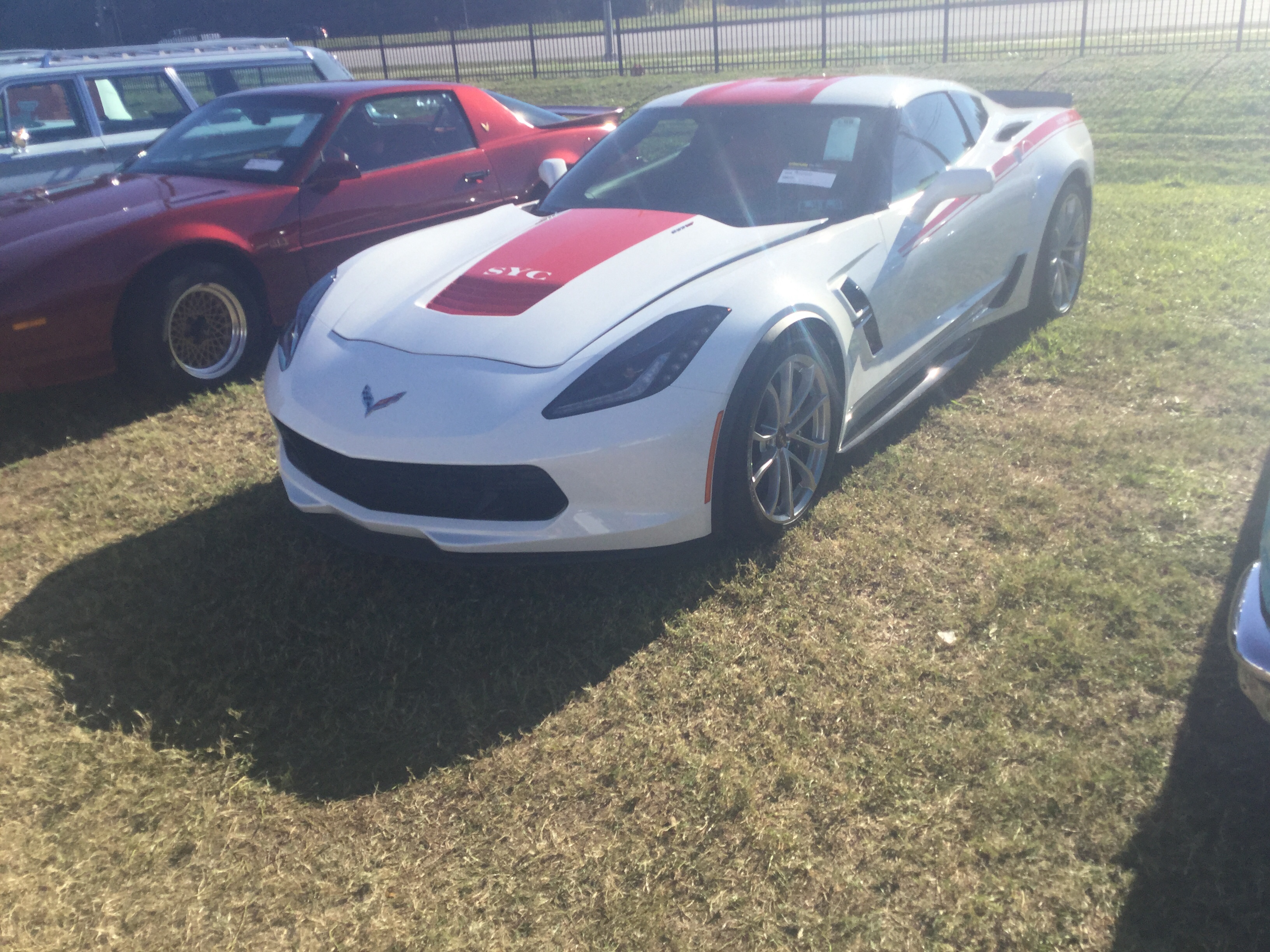 This is a 2013 Corvette Grand Sport Callaway that was at the 2013 Barrett-Jackson Auction in Palm Beach. This is from the C6 generation, which was made between June of 2004 and February of 2013 (model years between 2005 and 2013). The Grand Sport was made between 2009 and 2013 (model years between 2010 and 2013). The engine is a 6.2 liter LS3 V8 that equipped with a Callaway supercharger that produces 652 horsepower and 620 pound-feet of torque. The transmission of this one is a 6-speed manual.