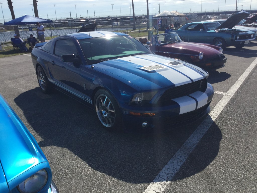 This is a 2011 Shelby GT500 that was at the 2023 Gulf View Square Mall Car Show. The Mustang is a sports car that’s been in production since March of 1964. This is from the second phase of fifth generation of the Mustang (which was made between January of 2009 and June of 2014 (model years between 2010 and 2014). The engine is a 5.4 liter supercharged Modular V8 that produces 550 horsepower and 510 pound-feet of torque. The transmission is a 6-speed manual.