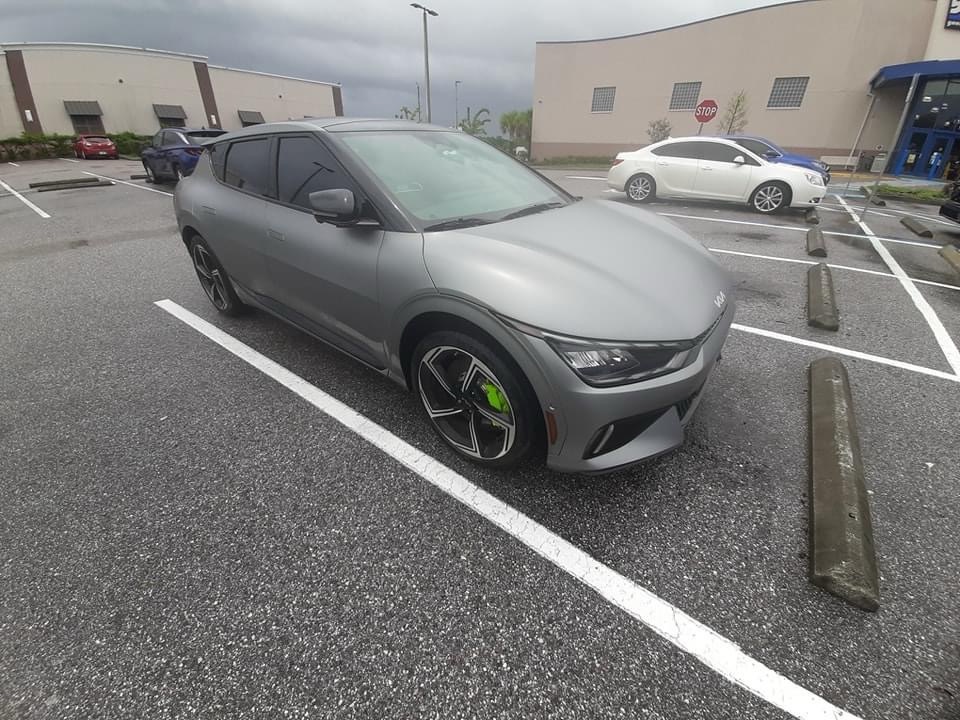 That’s a 2024 Kia EV6 GT-Line. The Kia EV6 is an electric crossover that’s been in production since 2021 (the first model year was 2022). The electric motor is a 77.4 kilowatt lithium polymer battery that produces 320 horsepower and 446 pound-feet of torque. The transmission is a 1-speed reduction gear. This crossover has a towing capacity of 2,300 pounds.