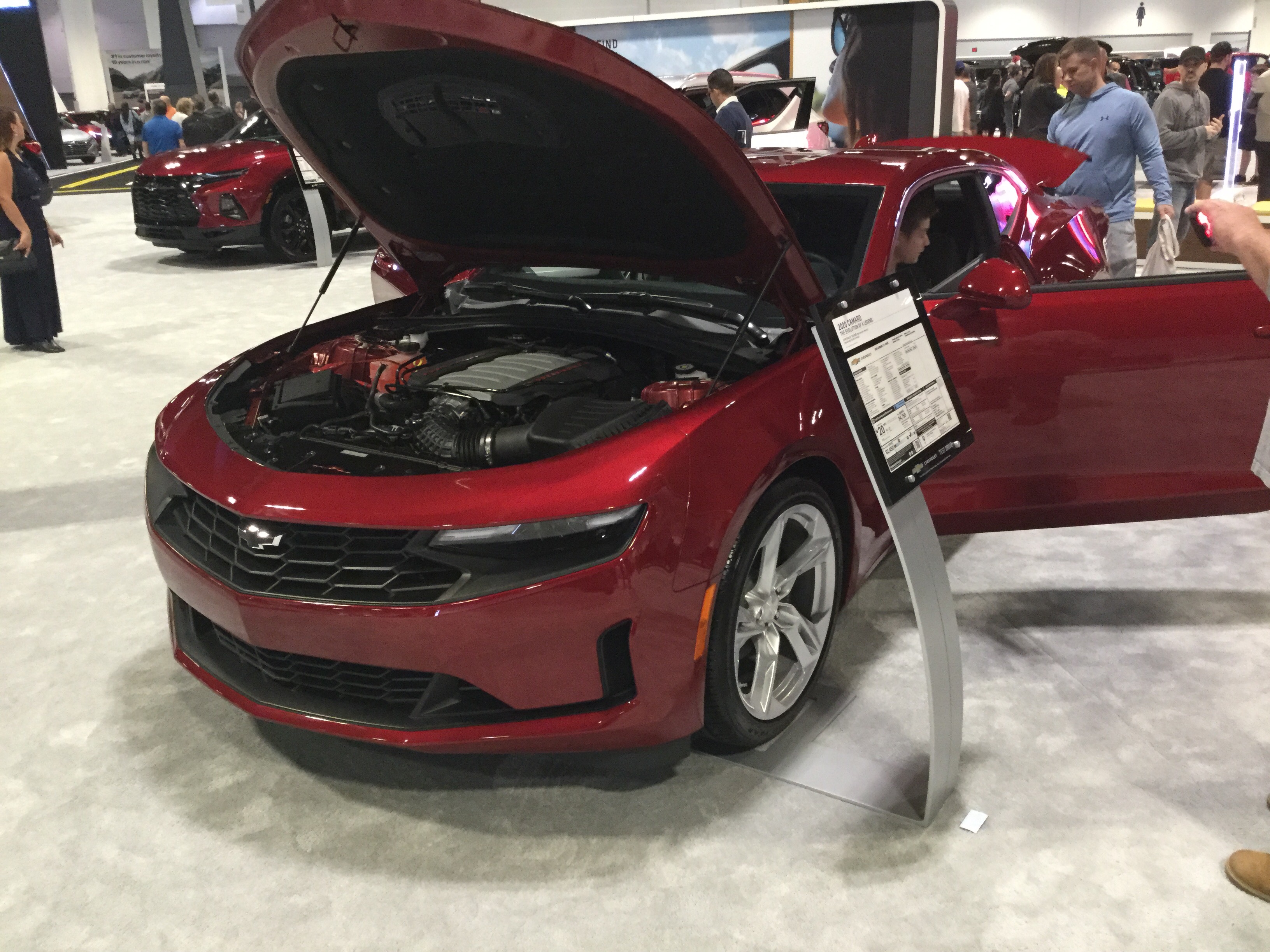 This is a 2020 Chevy Camaro LT1 that was at the 2020 Shops at Wiregrass Car & Truck Show. This is from the sixth generation of the Camaro, which has been in production since November of 2015 (the first model year was 2016). The Camaro received an update for the 2019 model year. The engine is the LT1, which is a 6.2 liter V8 that produces 455 horsepower and 455 pound-feet of torque. The transmission of this one is a 10-speed automatic.