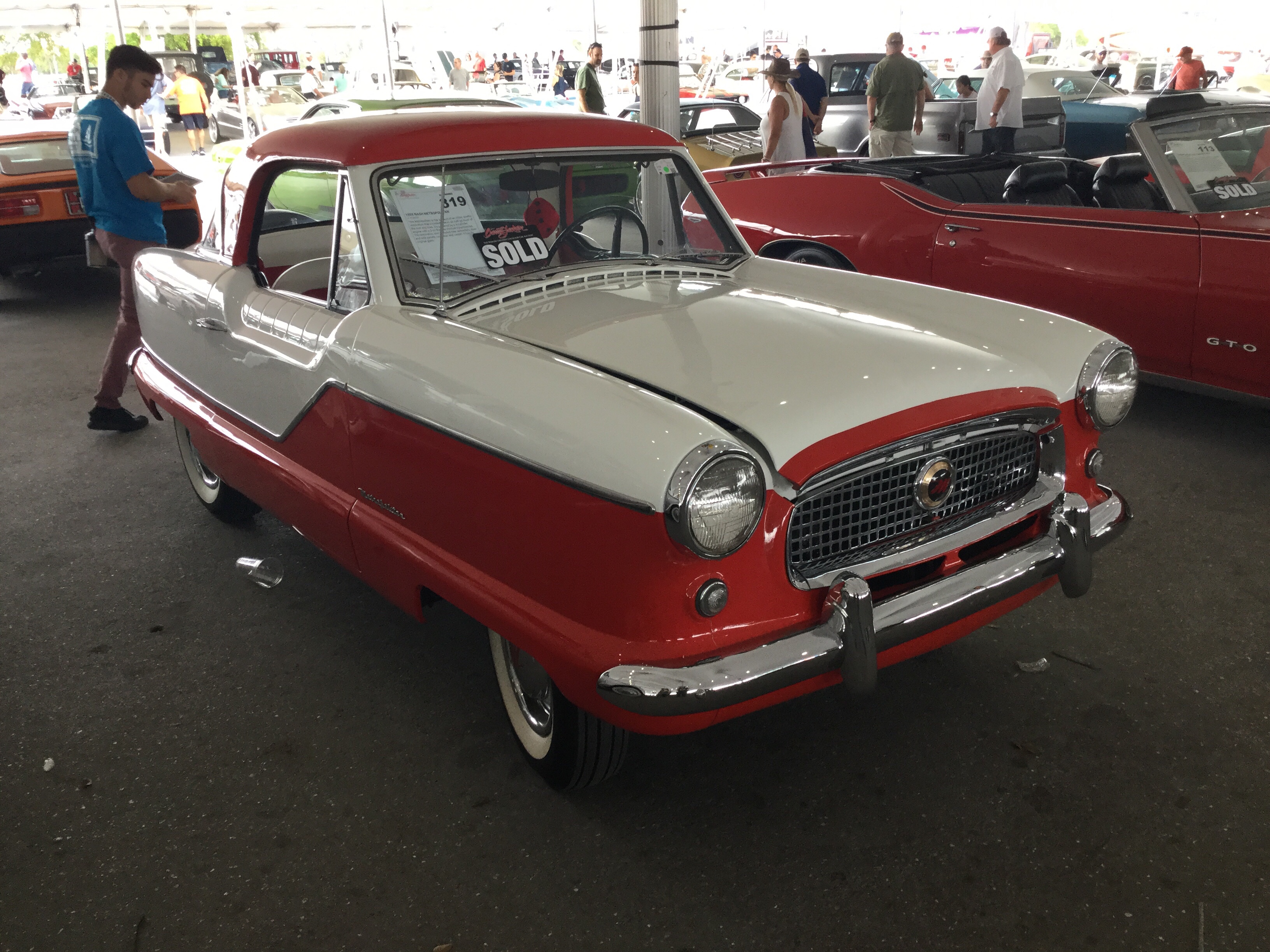 That’s a ’59 Nash Metropolitan that was at the 2021 Daytona Turkey Rod Run. The Nash Metropolitan is a subcompact that was in production between October of 1953 and April of 1961 (model years between 1954 and 1962). The engine of this one is a 1.5 liter straight-4 that produces 52 horsepower and 77 pound-feet of torque. The transmission is a 3-speed manual. This car does 0-60 mph in 21.1 seconds and has a top speed of 77 mph.