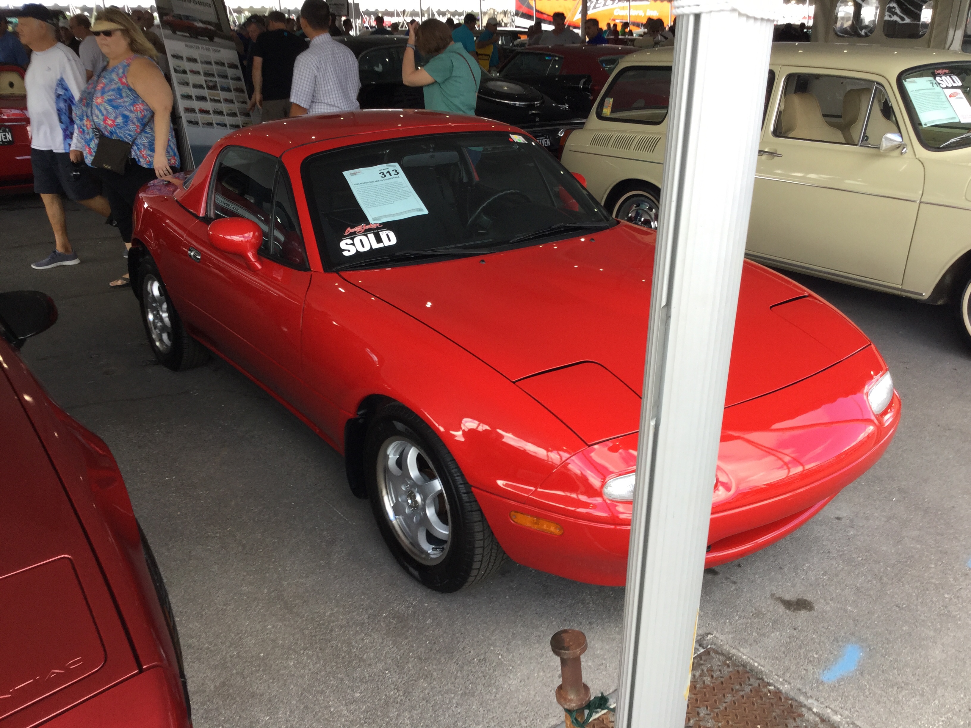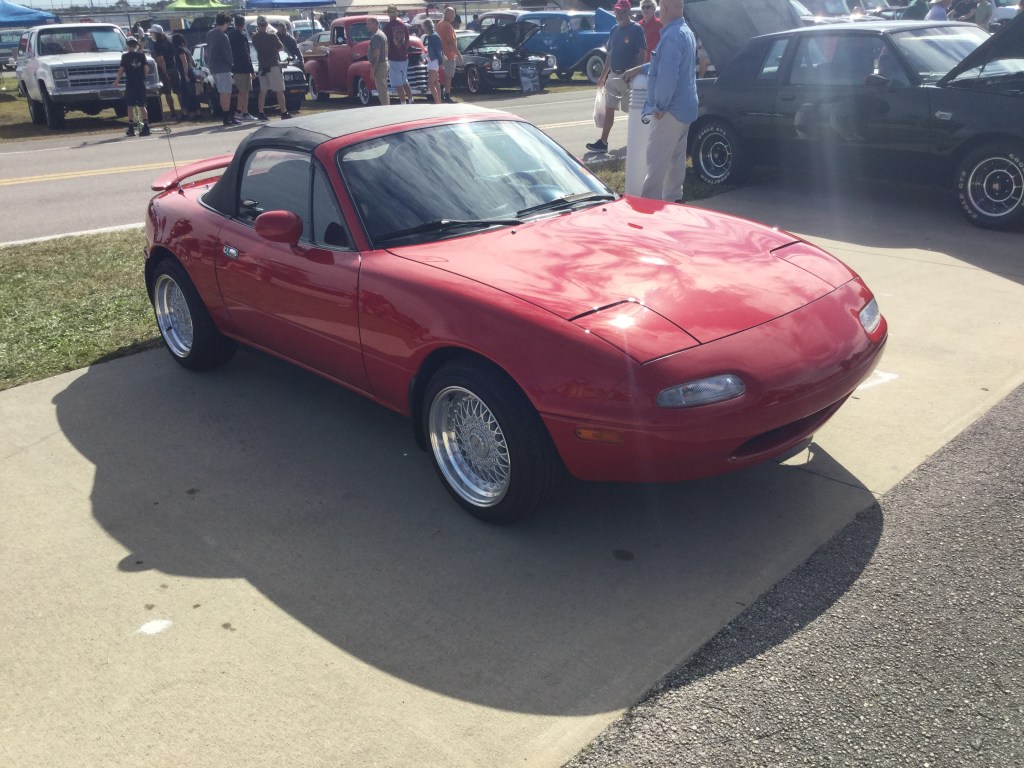 That’s a 2007 Mazda MX-5. The Mazda MX-5 is a sports car that’s been in production since 1989. This is from the third generation, which was made between 2005 and 2015 (model years between 2006 and 2015). The engine is a 2 liter MZR LF-VE straight-4 that produces 170 horsepower and 140 pound-feet of torque. The transmission of this one is a 6-speed manual.