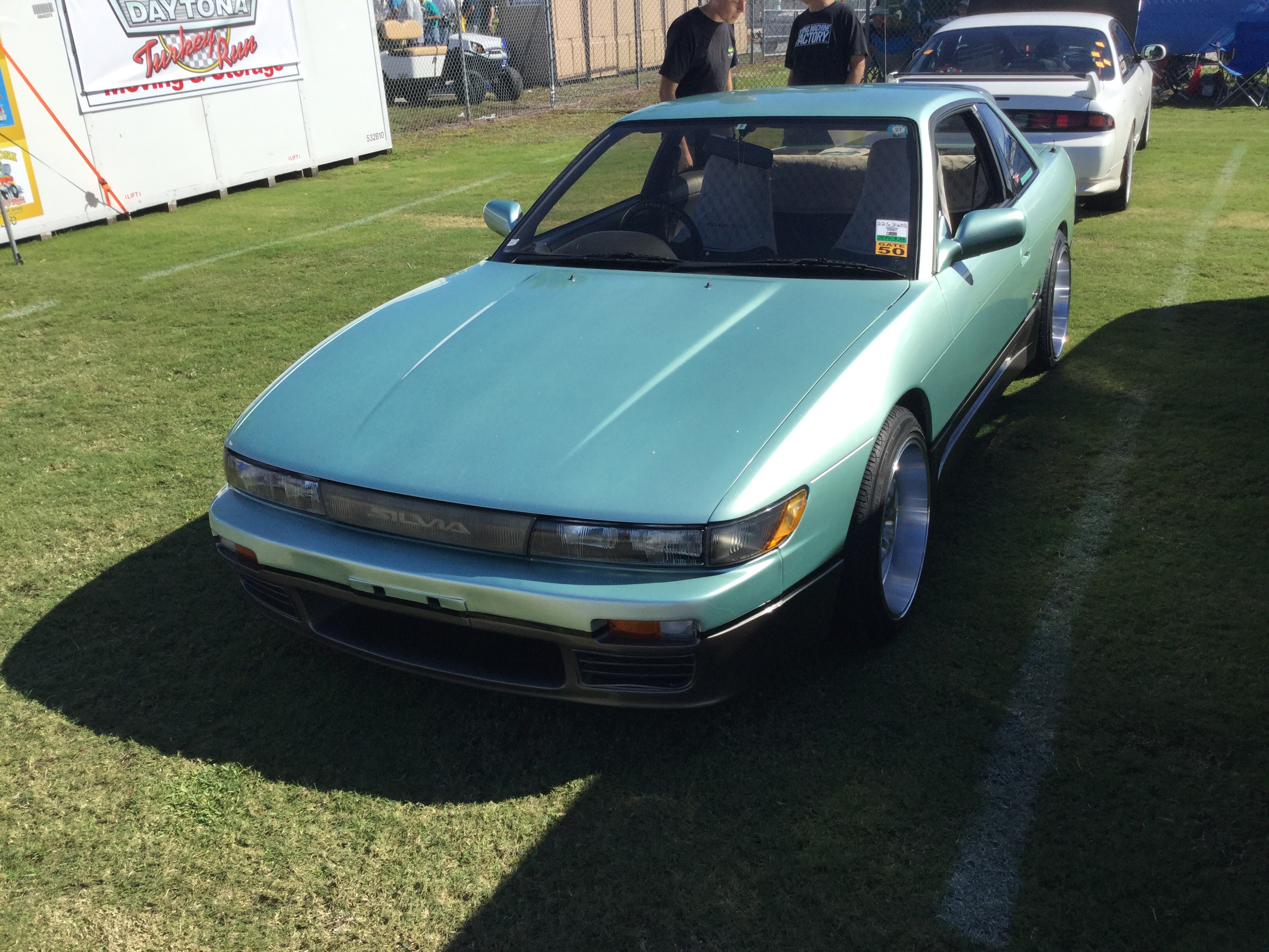 Today’s car of the day is this Nissan Silvia that was at the 2018 Daytona Turkey Rod Run. This is from the S13 generation, which was made between 1989 and 1994. The engine of this one is a 2 liter SR20DE straight-4 that produces 138 horsepower and 132 pound-feet of torque. The transmission of this one is a 5-speed manual. This car does 0-60 mph in 7.8 seconds and has a top speed of 132 mph.