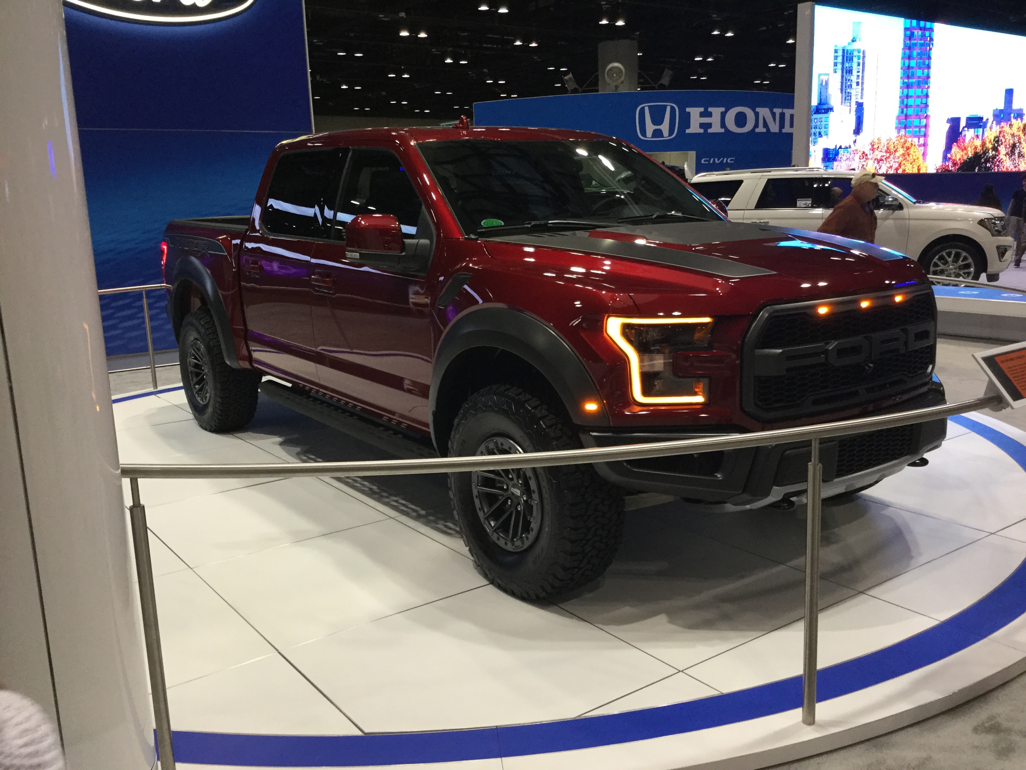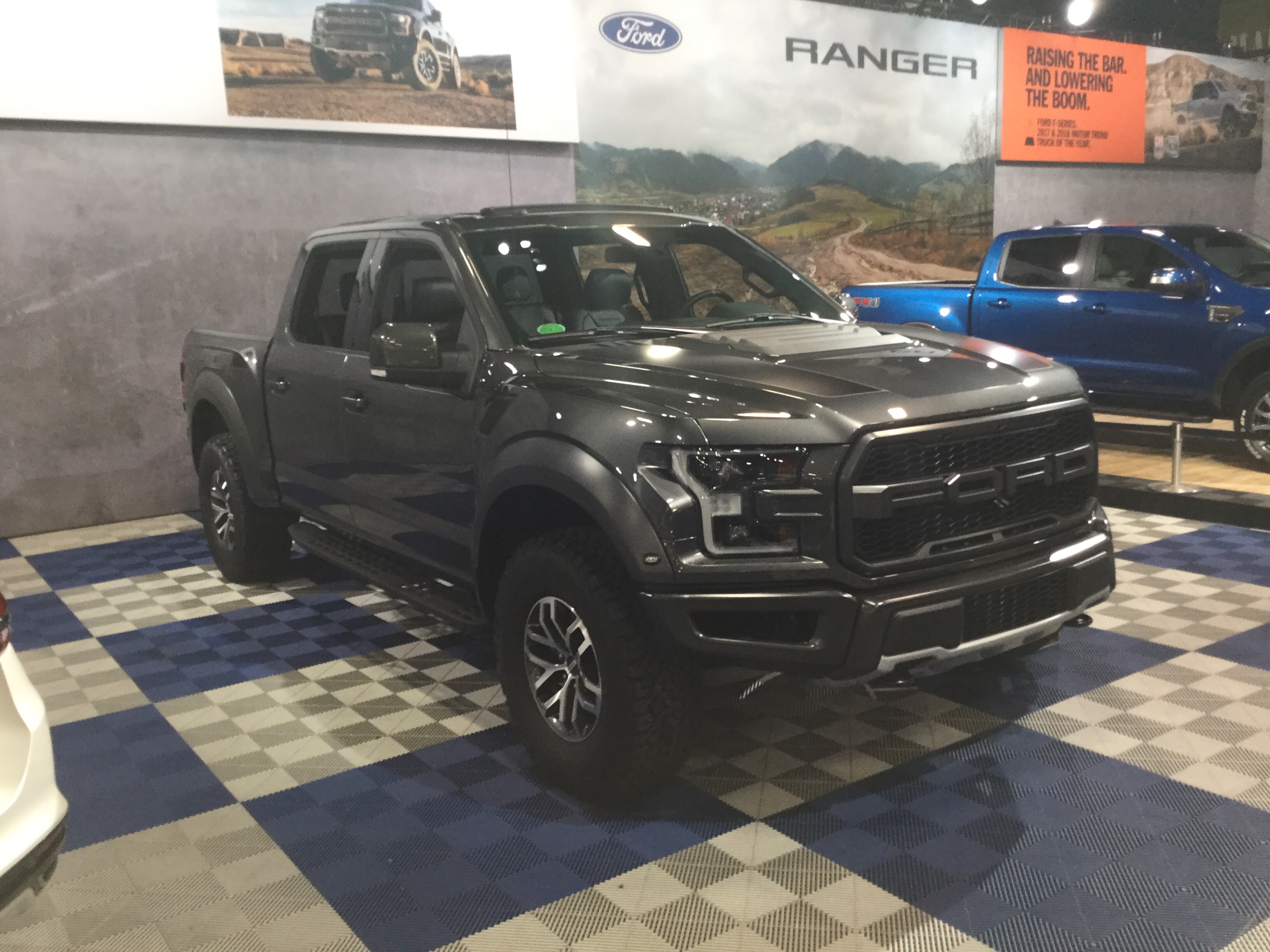 This is a 2014 Ford F-150 SVT Raptor that was at the 2013 Central Florida Auto Show. The Ford F-Series is a line of trucks that’s been in production since 1948. This is from the twelfth generation, which was made between October of 2008 and December of 2014 (model years between 2009 and 2014). The engine is a 6.2 liter Boss V8 that produces 411 horsepower and 434 pound-feet of torque. The transmission is a 6-speed automatic.