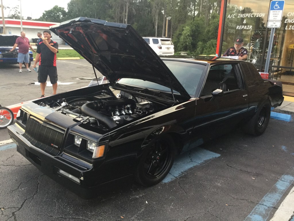 This is an ’87 Buick Grand National that was at the 2014 Barrett-Jackson Auction in Palm Beach. The Buick Regal is a mid-sized car that was originally made between 1973 and 2004. This is from the second generation, which was made between 1978 and 1987. The Grand National was made between 1982 and 1987. The engine is a 3.8 liter turbocharged V6 that produces 245 horsepower and 355 pound-feet of torque. The transmission is a 4-speed automatic. This car does 0-60 mph in 4.8 seconds and has a top speed of 124 mph.