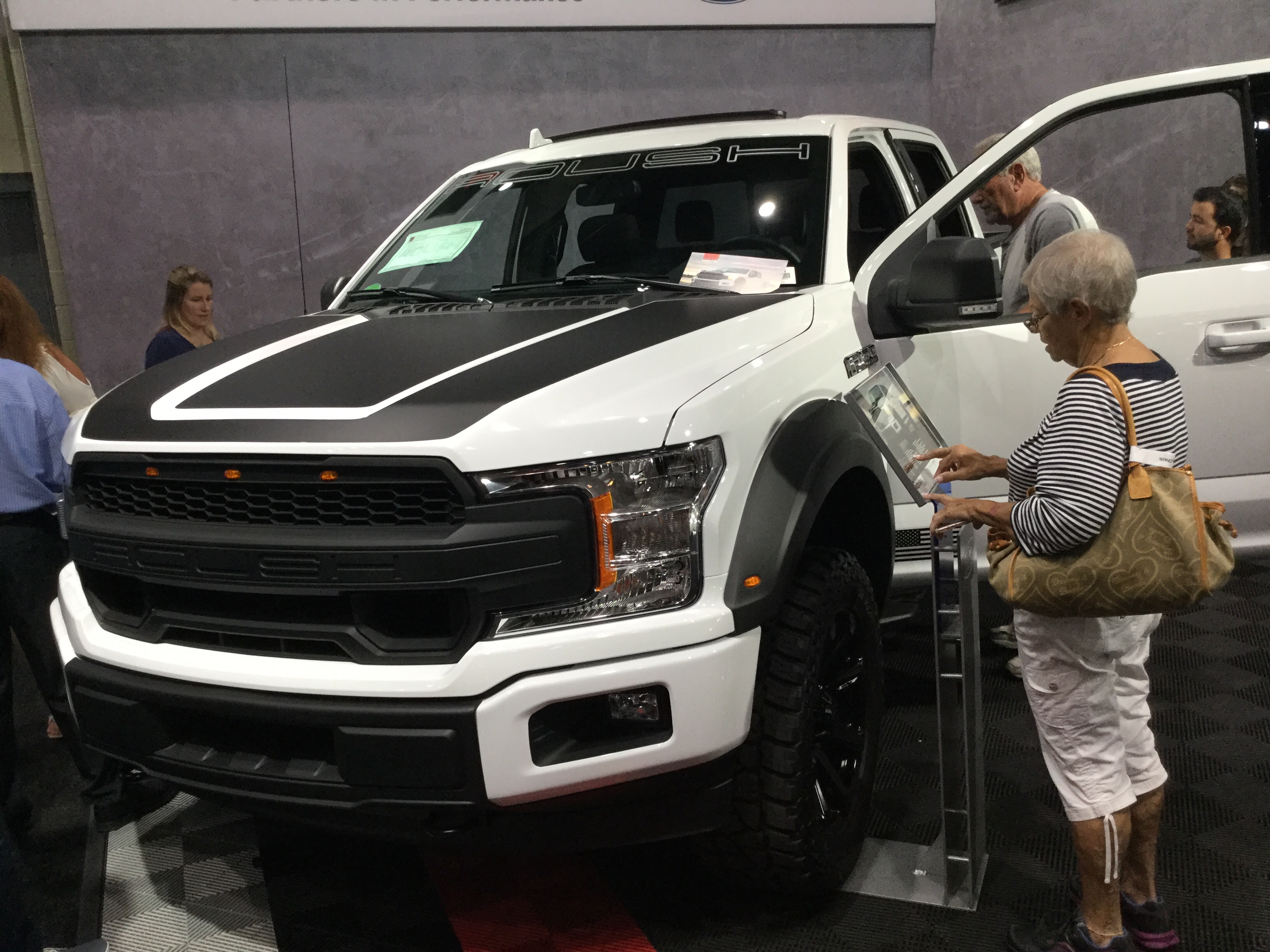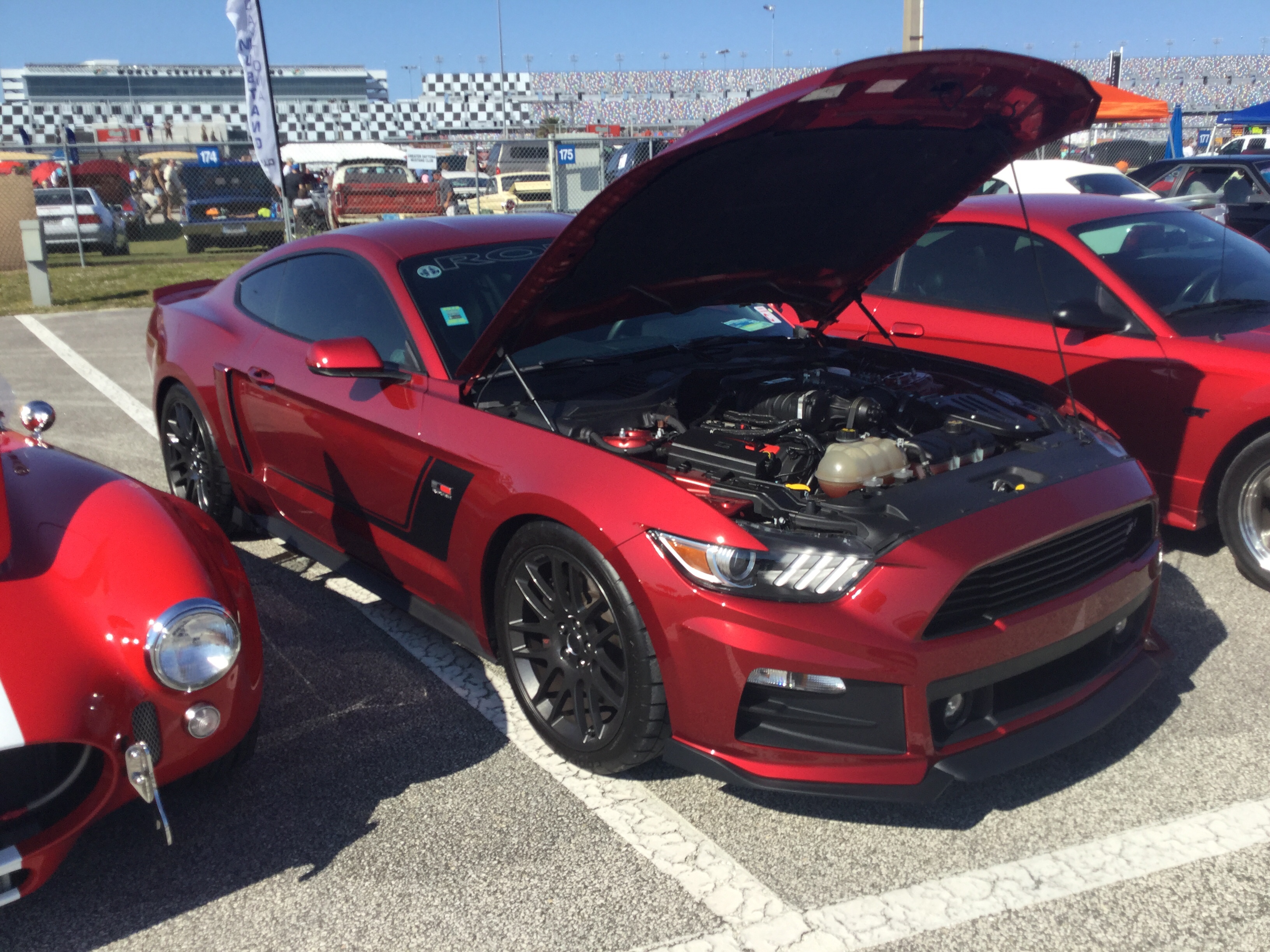 This is a 2019 Roush Mustang Stage 3 that was at the 2023 Gulf View Square Mall Car Show. The Mustang is a sports car that’s been in production since March of 1964. This is from the second phase of the sixth generation, which has been in production since 2017 (the first model year was 2018). The engine is a 5 liter supercharged Coyote V8 that produces 710 horsepower and 610 pound-feet of torque. The transmission of this one is a 6-speed manual.