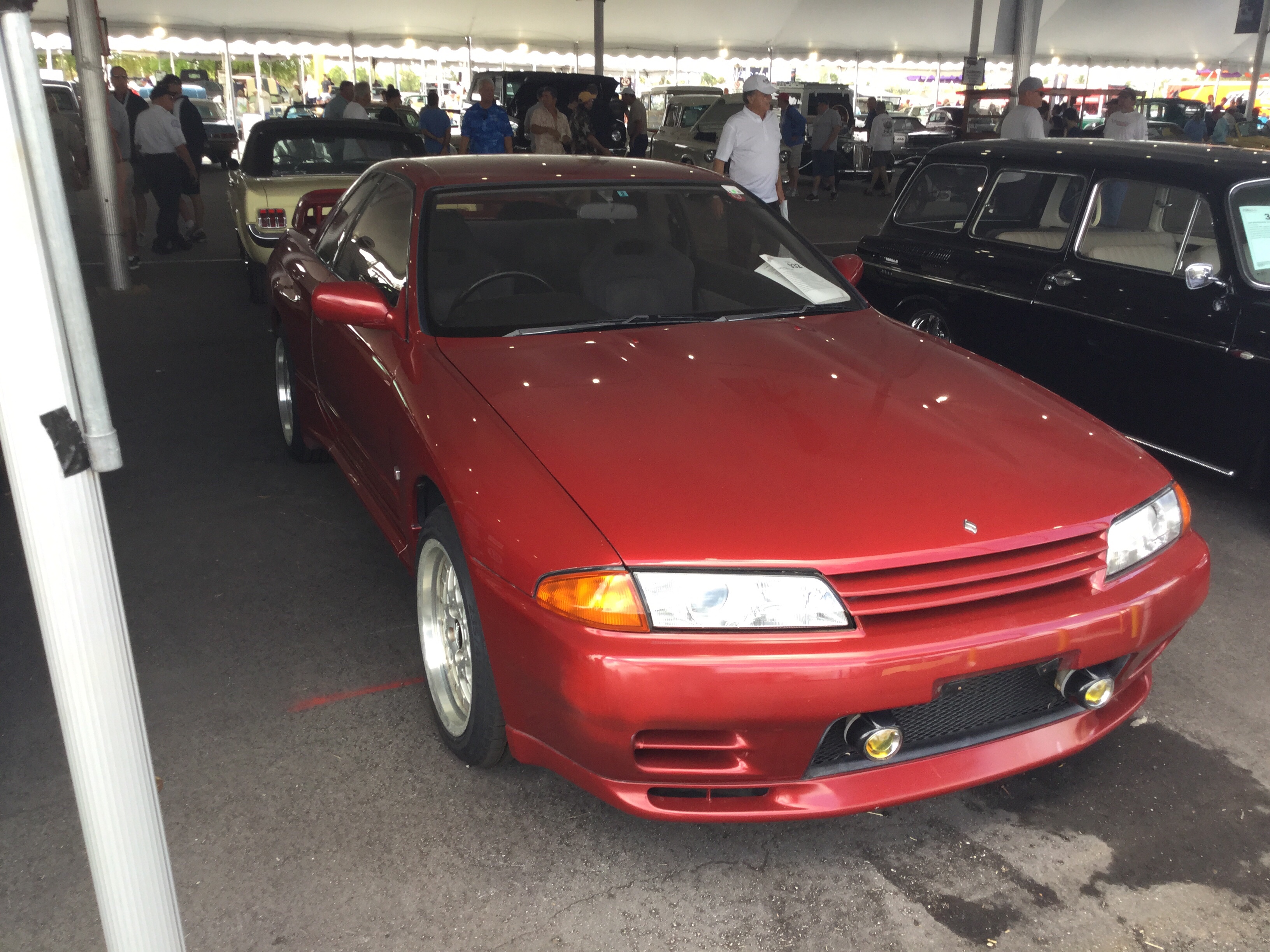 This is a ‘95 Nissan Skyline GT-R that was at the 2023 Gulf View Square Mall Car Show. The Nissan Skyline GT-R is a sports car that was originally made between 1969 and 1973. The second production run lasted from 1989 to 2002. This is from the fourth generation (R33), which was made between 1994 and 1999. The engine is a 2.6 liter twin turbo RB26DETT straight-6 that produces 276 horsepower and 260 pound-feet of torque. The transmission is a 5-speed manual. This car does 0-60 mph in 4.9 seconds and has a top speed of 155 mph.