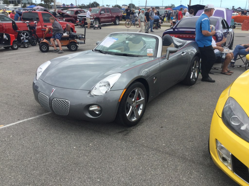 Here’s a 2007 Pontiac Solstice. The Pontiac Solstice is a sports car that was made between 2005 and 2010 (model years between 2006 and 2010). The engine of this one is a 2.4 liter EcoTec LE5 straight-4 that produces 177 horsepower and 166 pound-feet of torque. The transmission of this one is a 5-speed automatic. This car does 0-60 mph in 7.4 seconds and has a top speed of 120 mph.