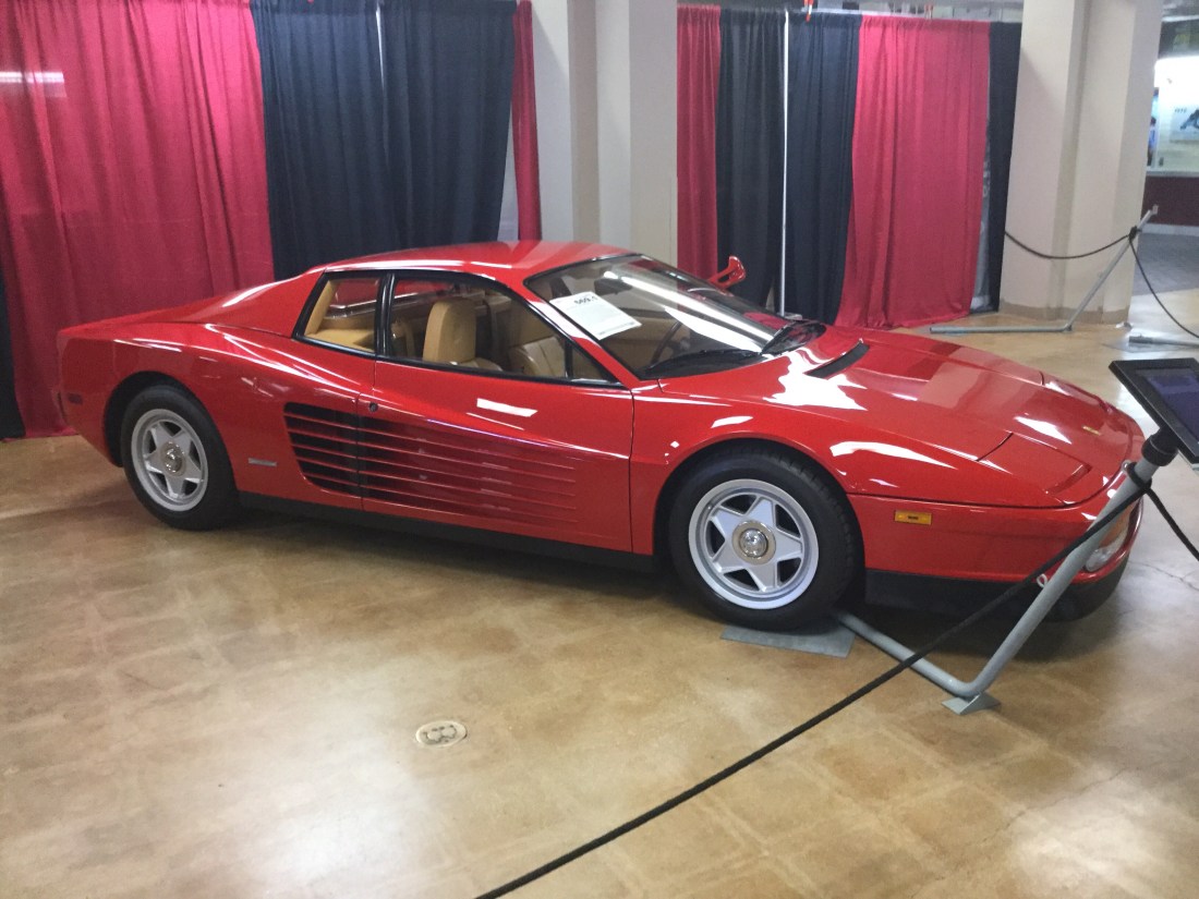 This is a ’90 Ferrari Testarossa that was at the 2019 Barrett-Jackson Auction in Palm Beach. The Ferrari Testarossa is a supercar that was unveiled at the 1984 Paris Motor Show, and was made between 1984 and 1996. A total of 7,177 were built. The engine is a 4.9 liter flat-12 that produces 390 horsepower and 361 pound-feet of torque. The transmission is a 5-speed manual. This car weighs 3,320 pounds since the body is made of aluminum and the chassis is a steel tubular frame. This car does 0-60 mph in 5.2 seconds and has a top speed of 178 mph. This Ferrari was auctioned off for $93,500.