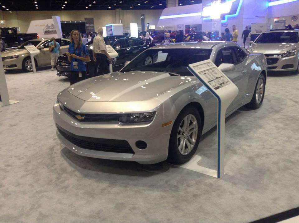 This is a 2014 Camaro V6 that was at the 2013 Central Florida Auto Show. The Chevy Camaro is a muscle car that was originally made between 1966 and 2002 (model years between 1967 and 2002). The second production run started in March of 2009 (the first model year was 2010). This is from the fifth generation, which was made between March of 2009 and November of 2015 (model years between 2010 and 2015). The engine is a 3.6 liter LFX V6 that produces 323 horsepower and 278 pound-feet of torque. The transmission of this one is a 6-speed automatic.