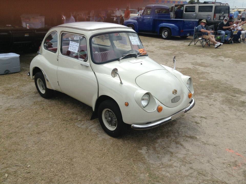 Today’s car of the day is this 1970 Subaru 360 that was at the 2013 Daytona Spring Show. The Subaru 360 is a subcompact that was made between 1958 and 1970. The engine is a 0.36 liter straight-twin that produces 25 horsepower and 25 pound-feet of torque. The transmission is a 4-speed manual. This car has a top speed of 60 mph. This is also the oldest Subaru I’ve ever seen.