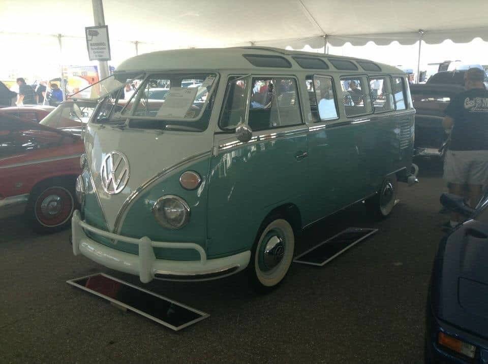 This is a ’63 Volkswagen Micro Bus that was at the 2013 Daytona Turkey Rod Run. The Volkswagen Type 2 is a utility vehicle that has been in production since November of 1949 (the first model year was 1950). This is from the first generation, which was made between 1950 and 1967. This one was modified to have a 2 liter flat-4 that produces 140 horsepower. The transmission is a 4-speed manual.